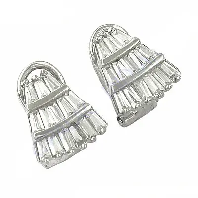 Trendy Silver Baguette Cut Stud Earrings for Women Daily Wear Religious Geometric Diamond Jewelry Rhodium Plated Brass Copper