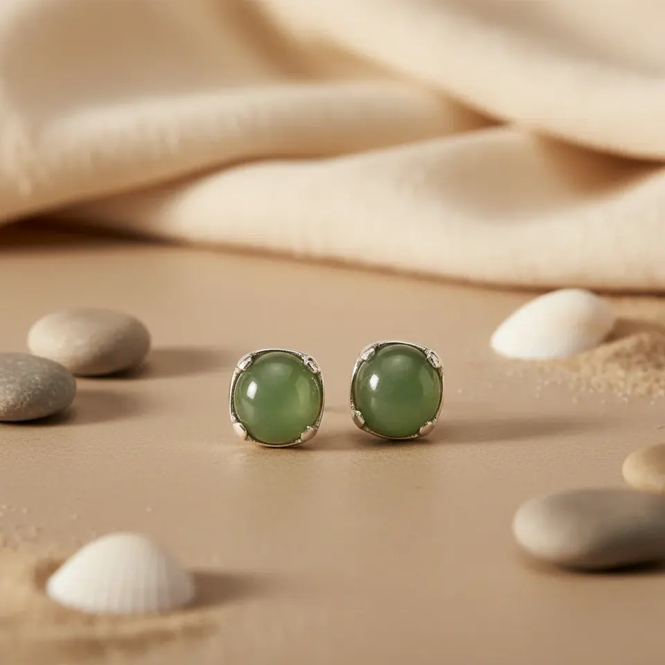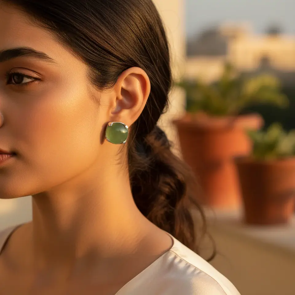Trendy Silver Stud Earrings for Women with Green Zircon Gemstone Stainless Steel Hoop Design for Parties and Gifts