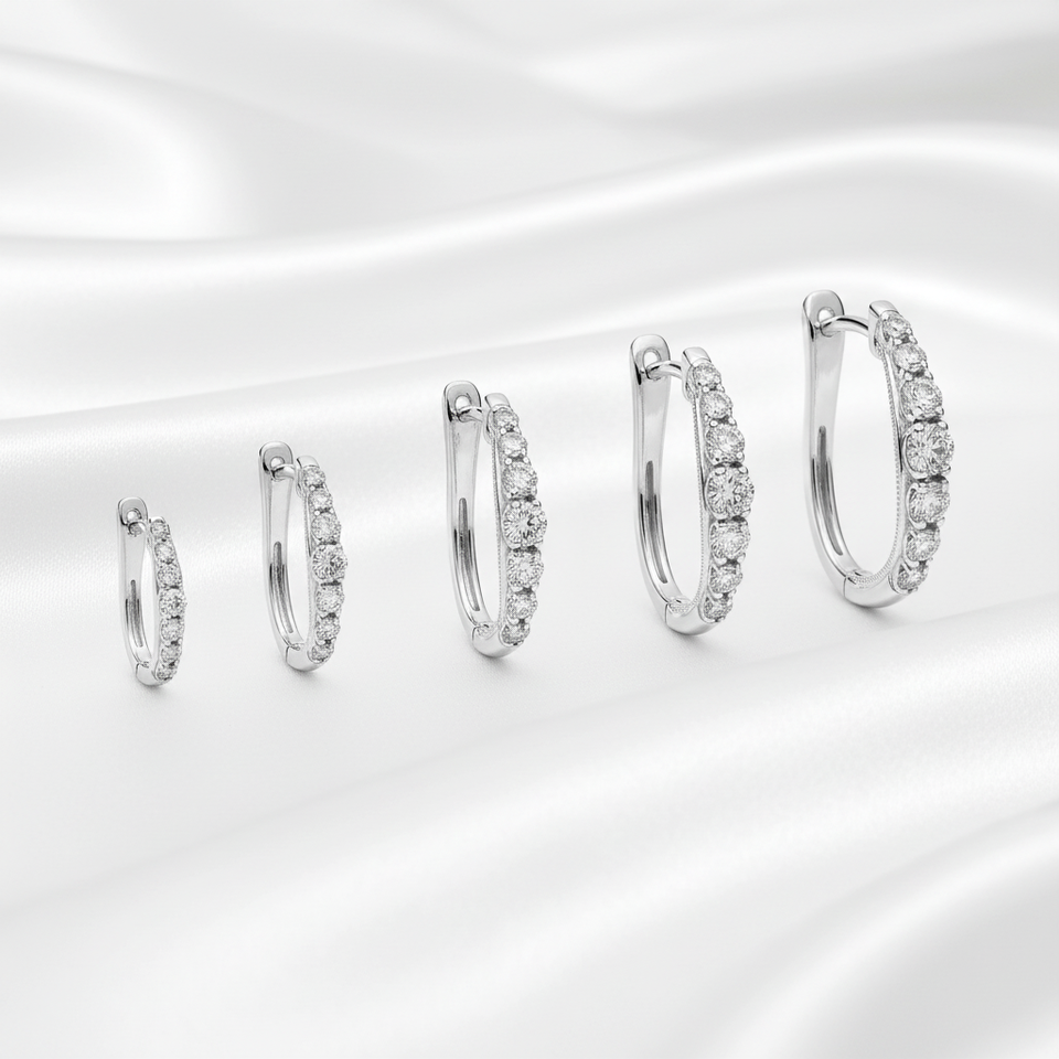 Trendy Single Row 7 Stone Dainty Moissanite Round Diamond Circle Huggie Hoop Earring Women's 925 Silver Everyday Party Jewellery