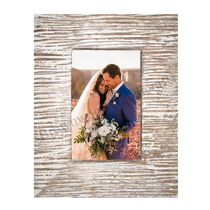 Trendy Solid Mango Wood Burnt White Antique Color 4X6 Inch Kids Photo Frame for Gifts Artistic Wooden Carved Picture Frame