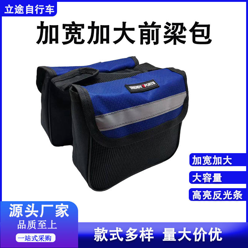 Trendy Sports Mountain Bike Front Frame Bag Blue Large Capacity Rainproof Cycling Top Tube Bag With Cell Phone Pocket