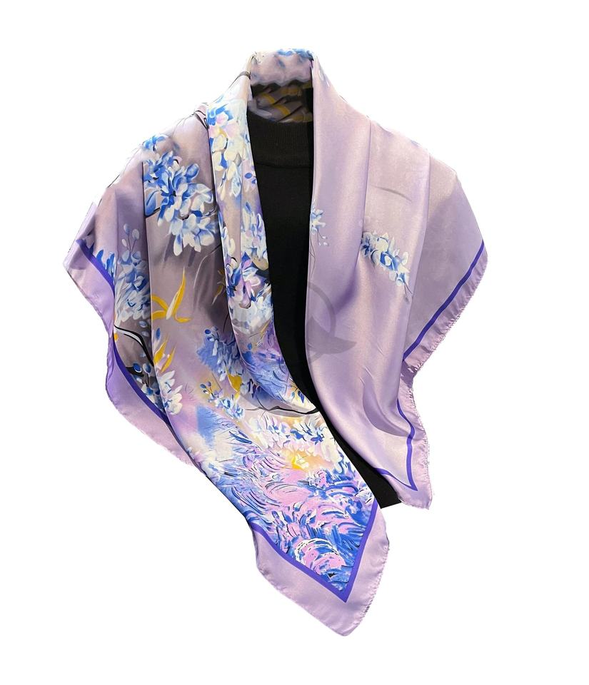 Trendy Spring Ethnic Floral Long Silk Scarf-Customizable Fashion Accessory with Silk Screen Printing Skin Friendly Cheap Price