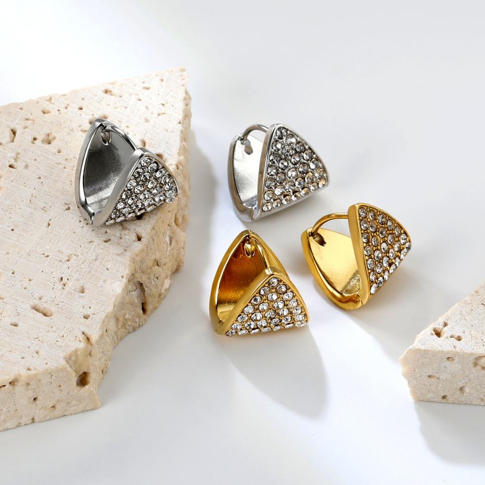 Trendy Stainless Steel 18K Gold Plated Triangle Zircon Diamond Wedding Jewelry Brides Pave Starry Sky Geometric Hoop Earrings