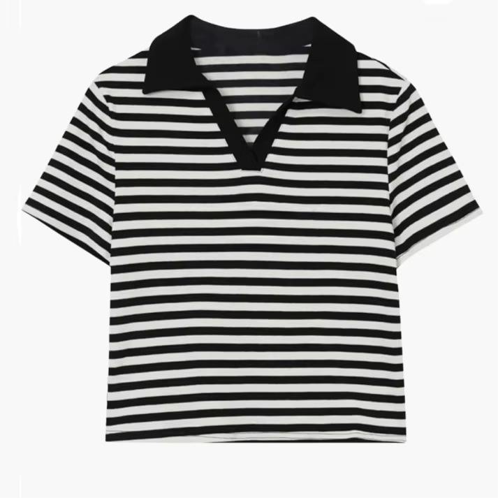 Trendy Style Custom Women Polo t Shirts Stripe Design Striped Wholesale Short Sleeve Us Women Golf Girls T-shirt and Polo Shirts