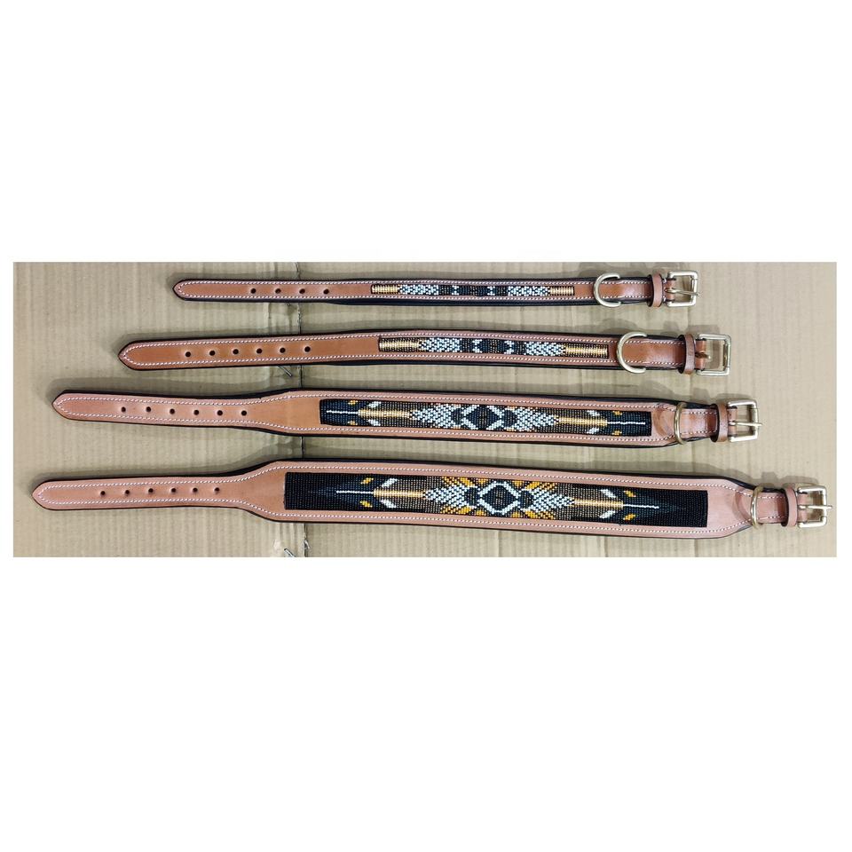 Luxury Trendy Style Hand Tooled Leather Dog Collar with Beaded Work Design and Soft Padding for Training Animal Pattern