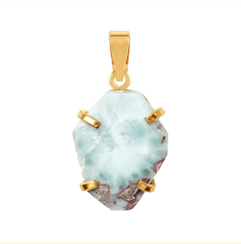 Trendy Style Larimar Uneven Shape Necklace Cabochon Gem 925 Sterling Silver Gold Plated Bezel Set Pendant for New Year Day