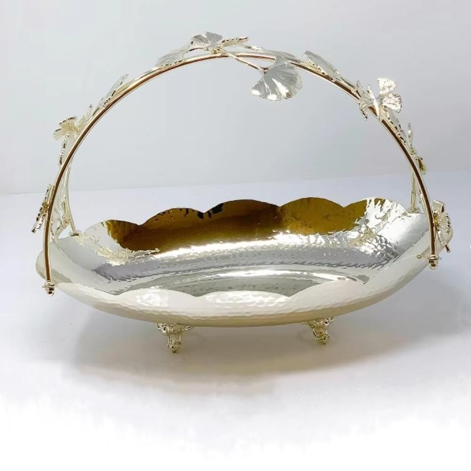 Trendy Style Luxurious Aluminium Hammered Pattern Serving Tray Basket With Amazing Gorgeous Handle