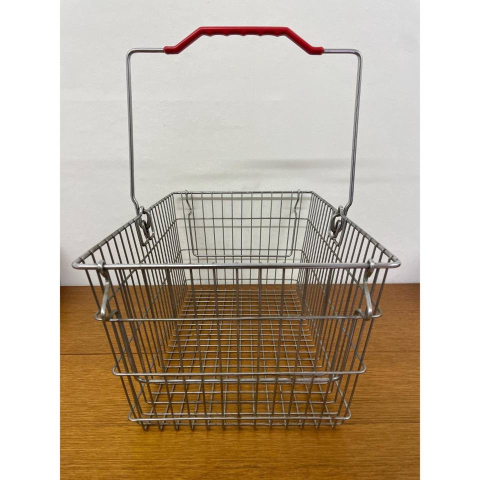 Trendy Style Metal basket storage made of metal with plastic handle red colour 70s Mid Century Vintage Style