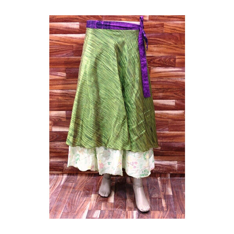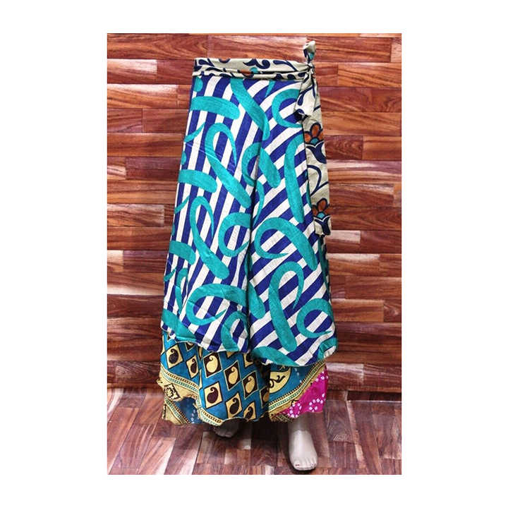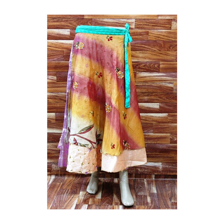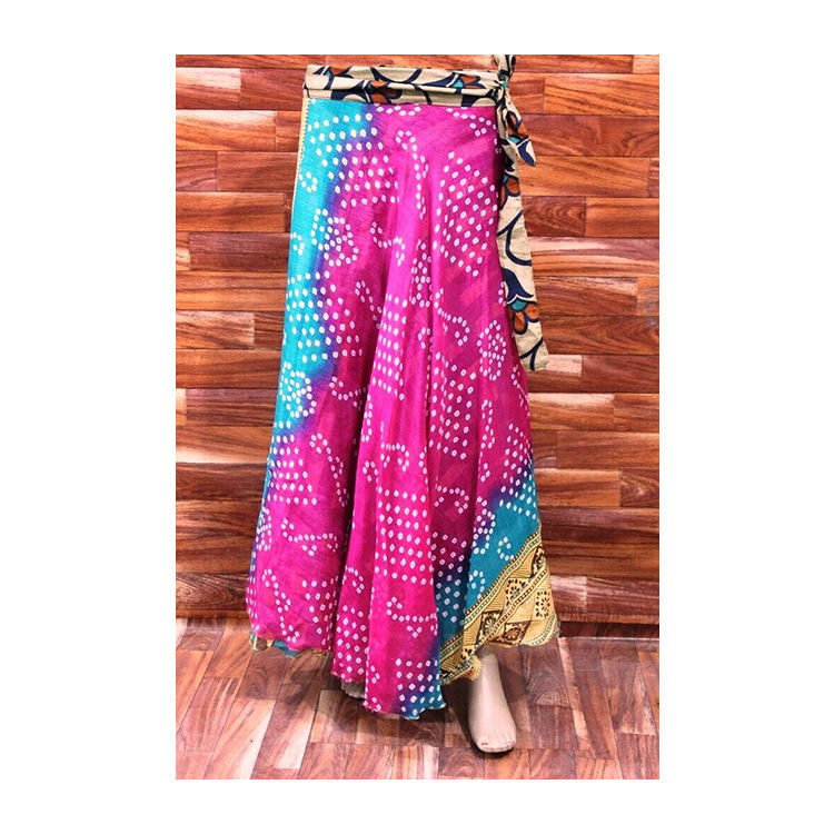 Trendy Stylish Elegant Design Boho Maxi Print Silk Sari Wrap Skirt Floral Colorful Printed Skirt Free Size Long Skirt for Ladies