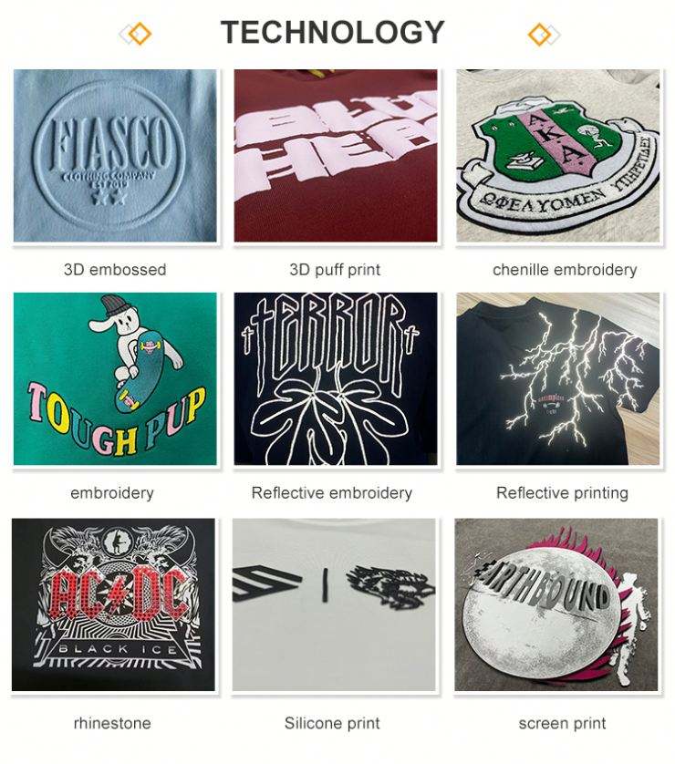 Logo position:Front, back, Left Sleeve, Right Sleeve, lower hem, back neck