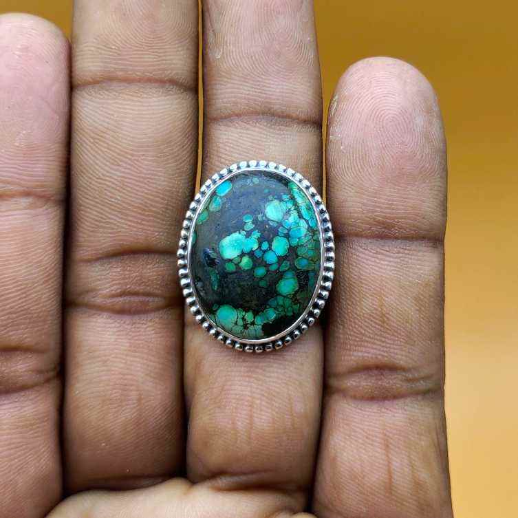 Trendy Tibetan Turquoise Gemstone 925 Sterling Silver Handmade Band Ring for Women for Weddings Parties Available for Wholesale