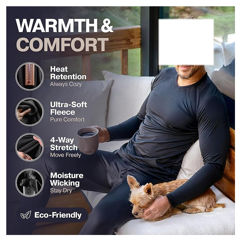Trendy Top Quality Long Johns Thermal Underwear for Men Fleece Lined Base Layer Set for Cold Weather