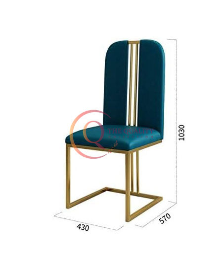 Trendy Unique Vibrant Upholstered Chair with Geometric Metal Frame and Gold Accents Perfect for Office or Dining Room.