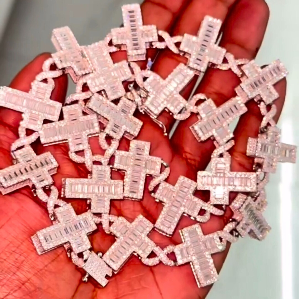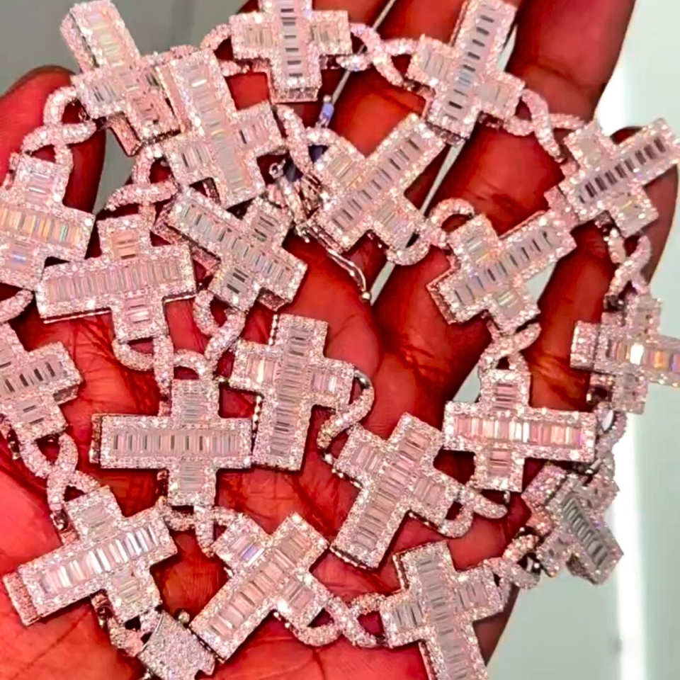 Trendy Unisex 925 Sterling Silver Customized Iced Diamond 16mm Chain New Fashion White Diamonds Hip Hop Style with Wood Charms