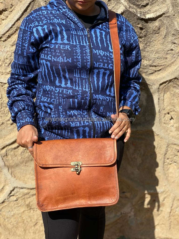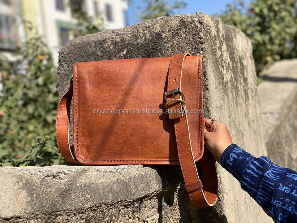 Trendy Unisex Brown Goat Leather Classic Handbag 9" Real Leather Crossbody Sling Bag Personalized Satchel Messenger Handbags