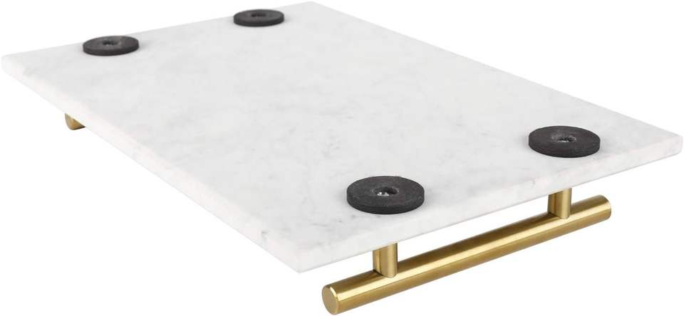 Trendy Verdant Oasis Handcrafted Marble Inlay Decorative Tray With Embellishment and Distressed Natural Marble for Nature Spaces