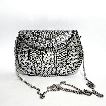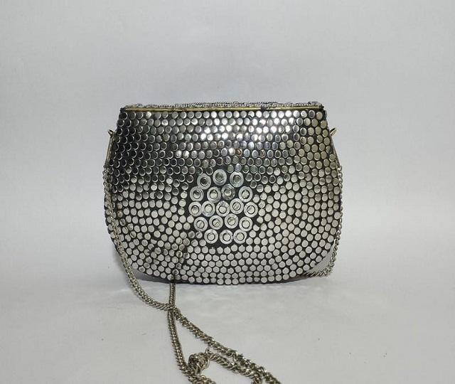 Trendy Vintage Bohemian Silver Evening Designer Clutch Handmade Luxury Indian Resin Brass Mosaic Metal Bag Lady Style Ready Ship
