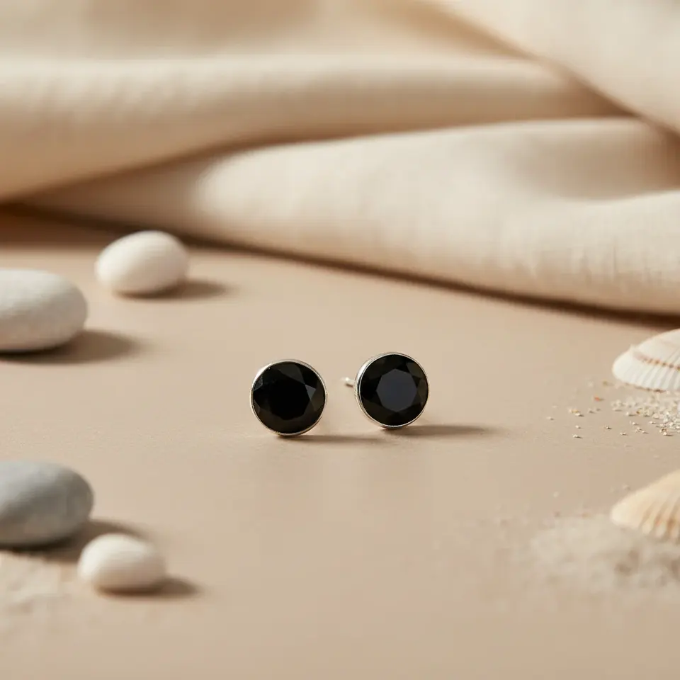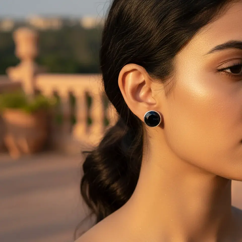 Trendy Vintage Silver Black Onyx Stud Earrings for Women Classic Geometric Hoop Design Diamond Pearl Daily Wear Jewelry Brass