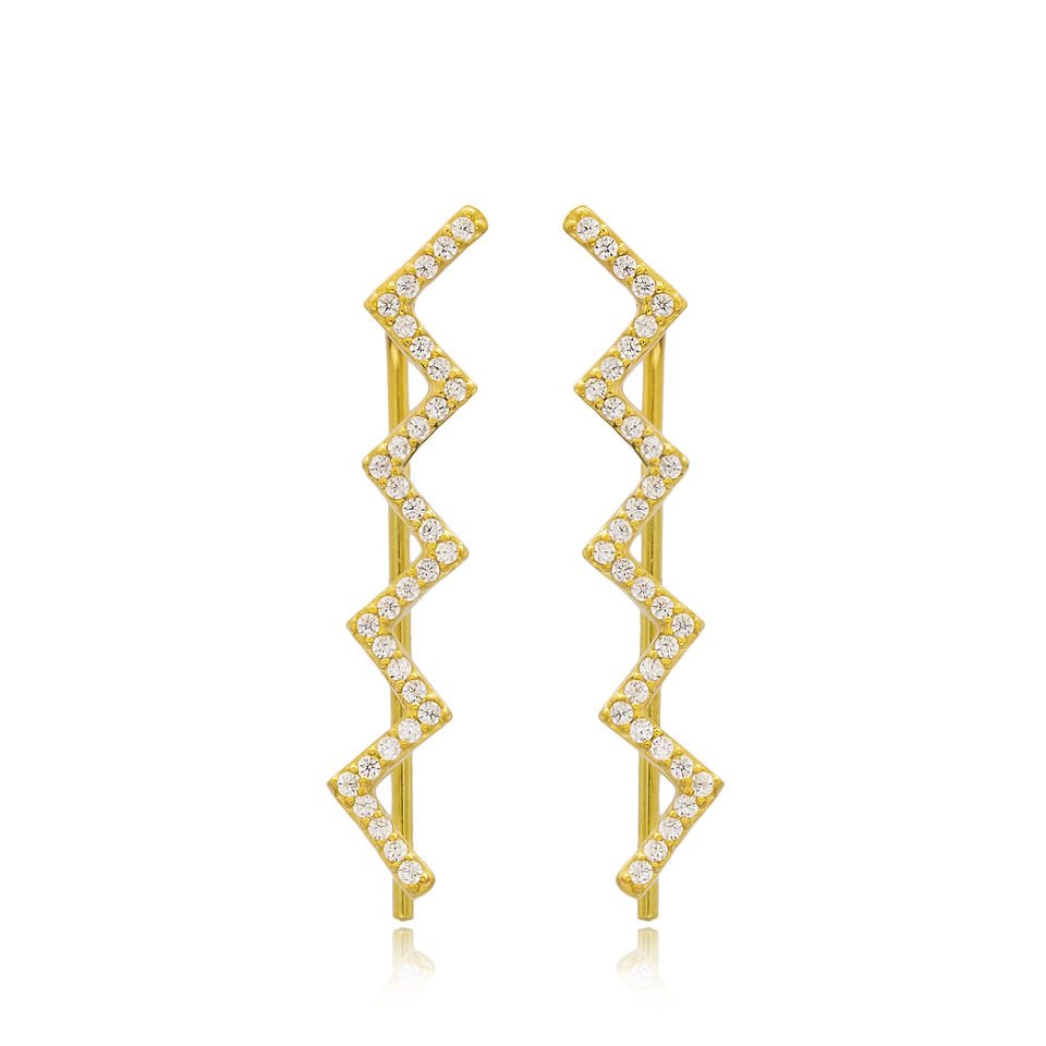 Trendy Wavy and Zig Zag Auricle Earring Turkish Wholesale 925 Sterling Silver for Ladies Jewelry