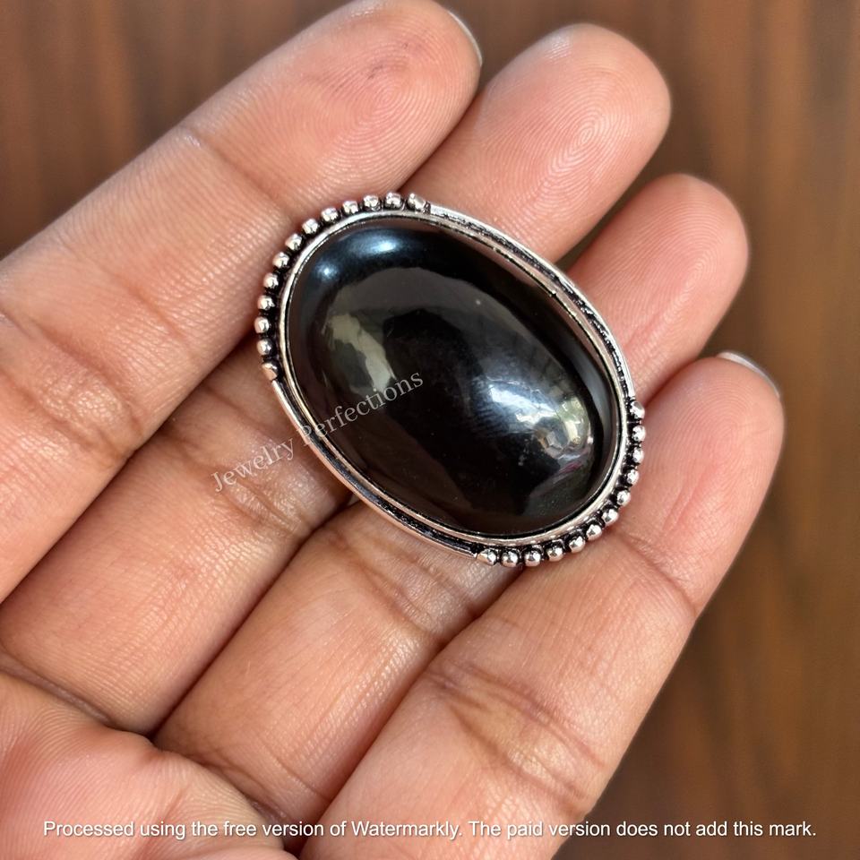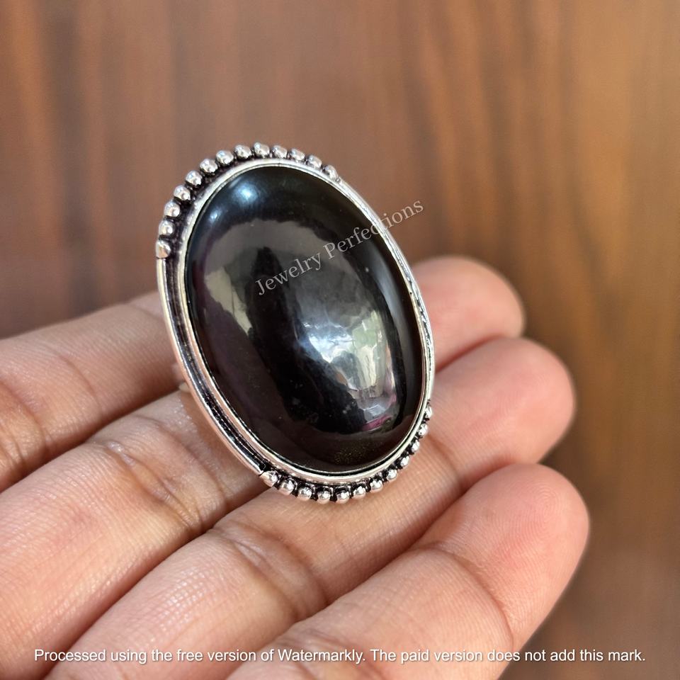 Trendy Wholesale Black Tourmaline oval shape Ring Sterling Silver Gemstone Silver Ring, Healing Crystal