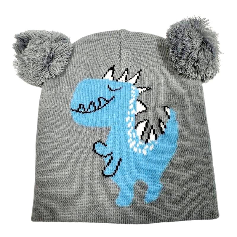 Trendy Winter Children's Beanie with Customizable Acrylic Pom Pom Cute Dragon Design Fashionable Cartoon Print Jacquard Cap