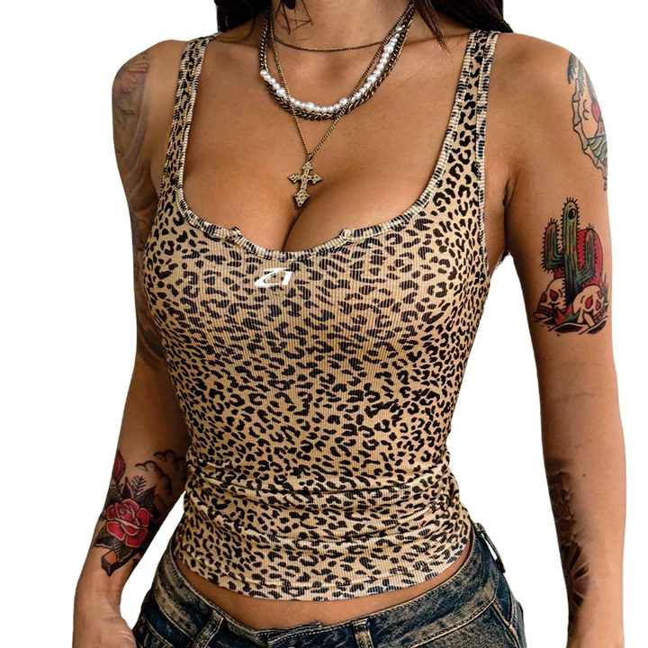 Trendy Women Leopard Print Ribbed Tank Top Slim Fit Stretch Sleeveless Tee Private Label Casual Fashion Summer Women's Shirts