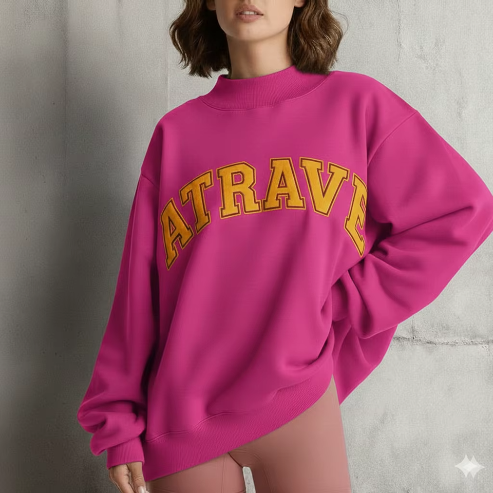 Trendy Women Oversized Stand Collar Streetwear Printed Sweatshirt Casual Loose Fit Pullover Long Sleeve Cozy Knit Top Badge for