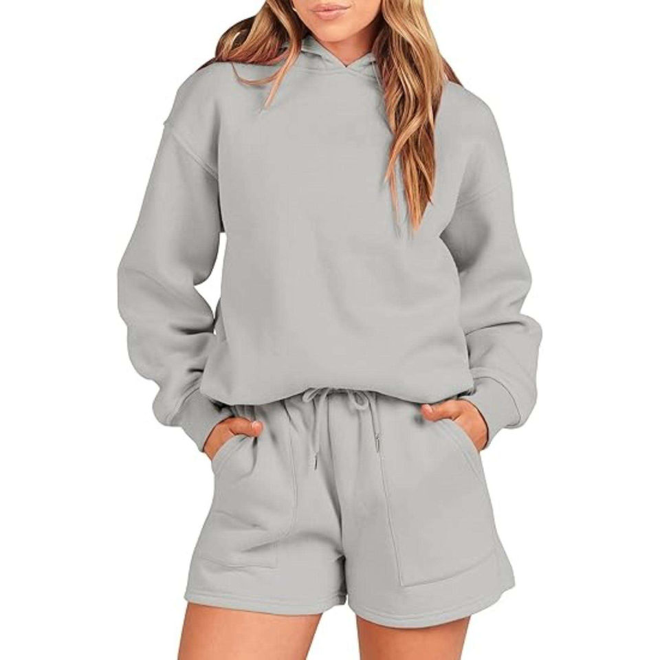 Trendy Women Two Piece Hoodie And Shorts Outfit Cozy And Stylish Casual Set For Gym Yoga Or Walks