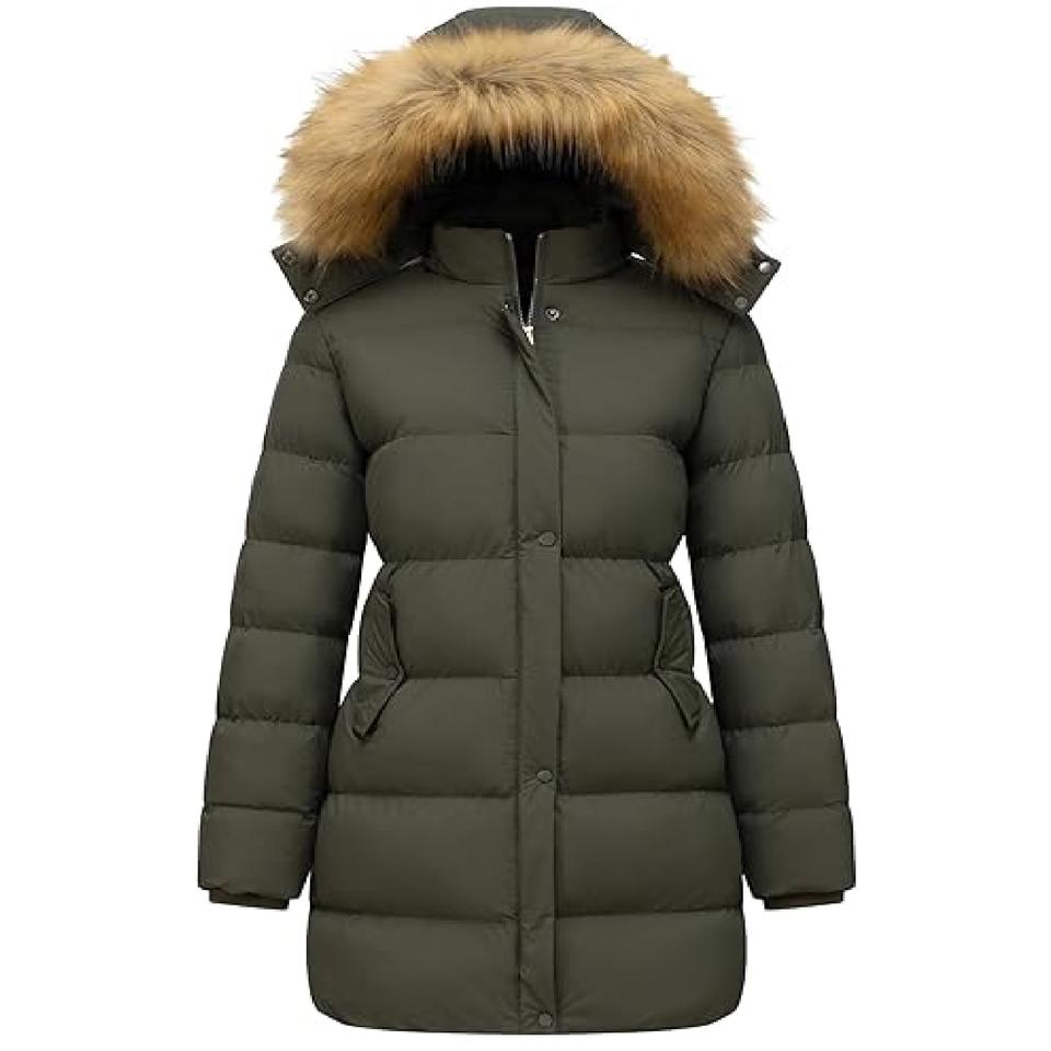 Trendy Women Winter Breathable Woven Puffer Coat Warm Quilted Outerwear with Fur Hood ELEGANT 100% Polyester