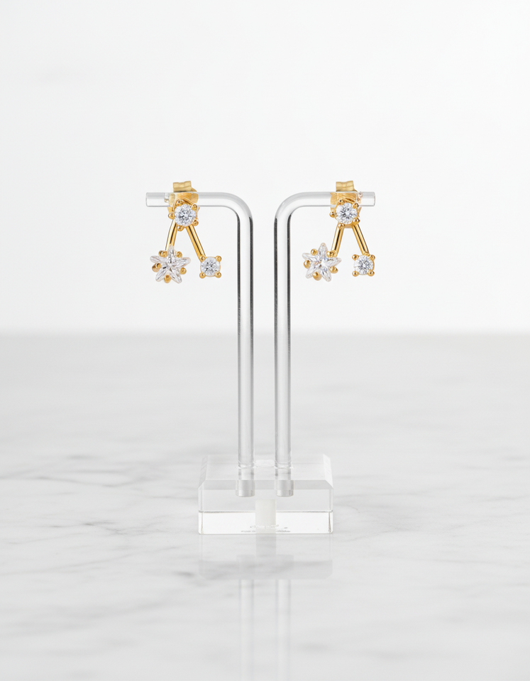 Trendy Women's Celestial 3 Stone Moissanite Earrings Triangular Star Round Cut 925 Sterling Silver Simple Style Ear Jackets Stud
