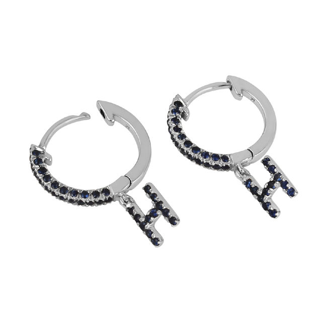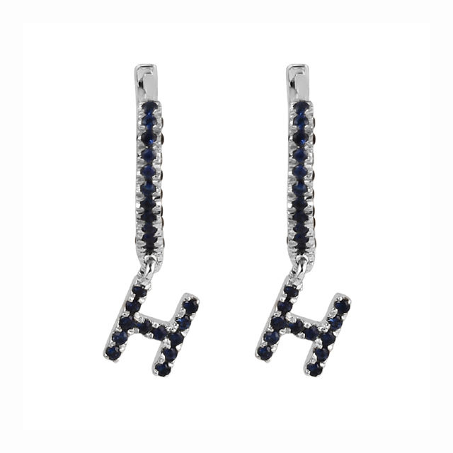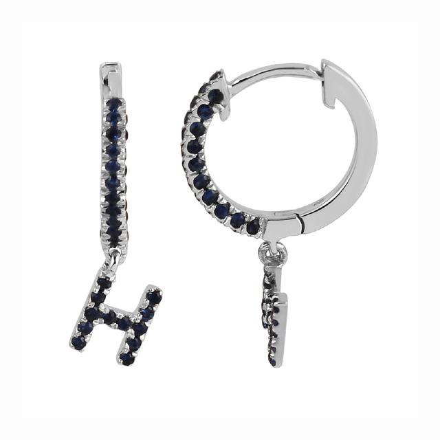 Trendy Women's Fine Jewelry Wholesale Sterling 925 Silver Natural Blue Sapphire Gemstone Hoop Earrings for Weddings H Alphabeted