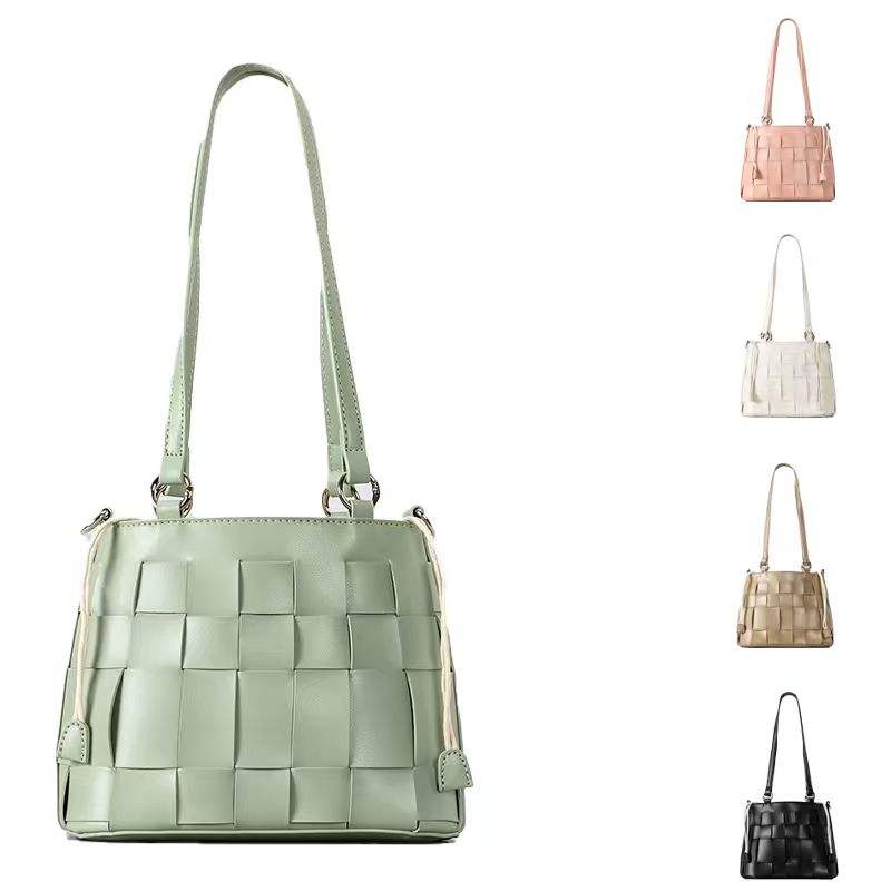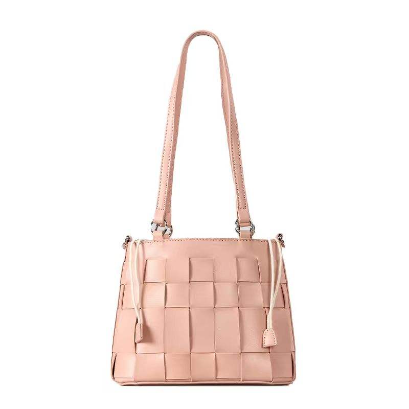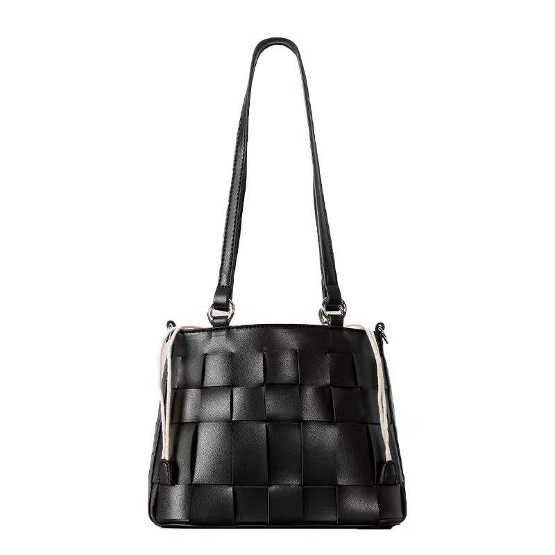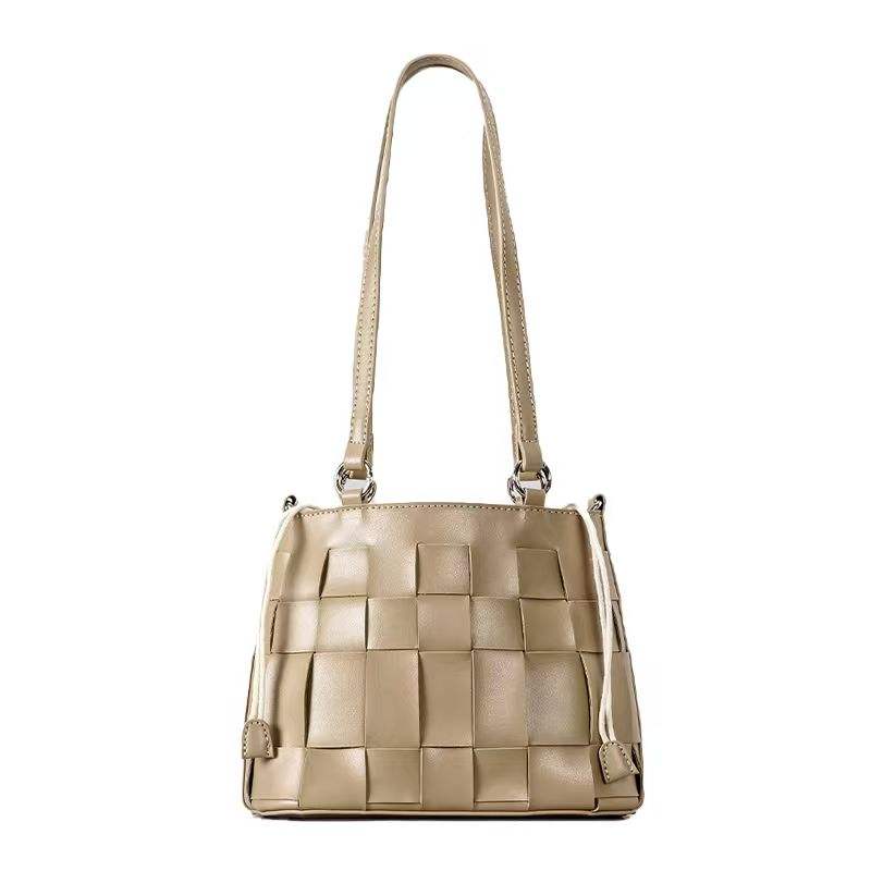 Trendy Women's Niche Hand Woven Bucket Bag Single Shoulder Crossbody Zipper Mobile Phone Versatile Fashion Style