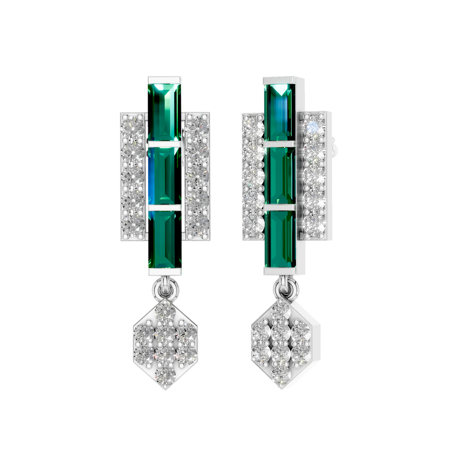 Trendy Women's Party Earrings Baguette-Cut Lab Grown Diamond Emerald Gemstone Diamond Drop 950 Platinum Fine Gift