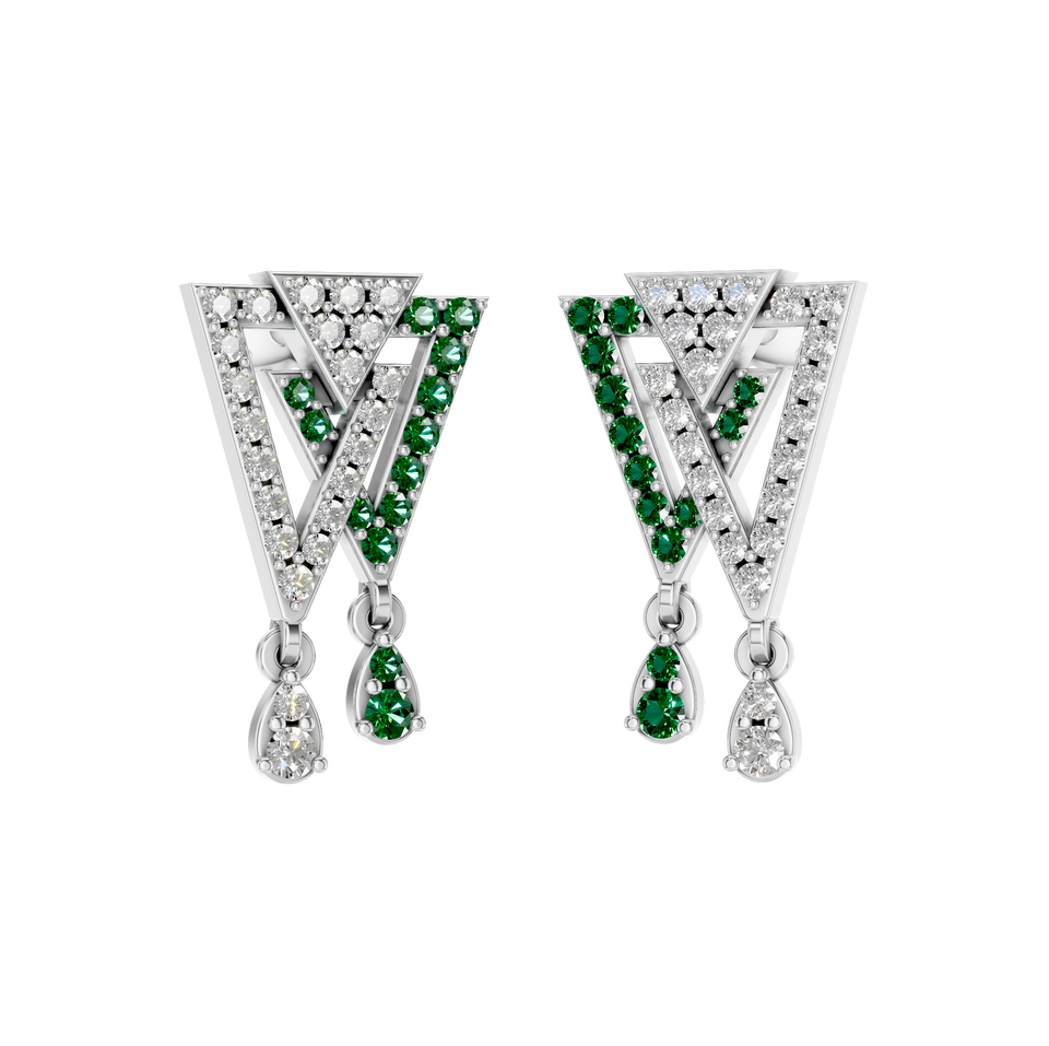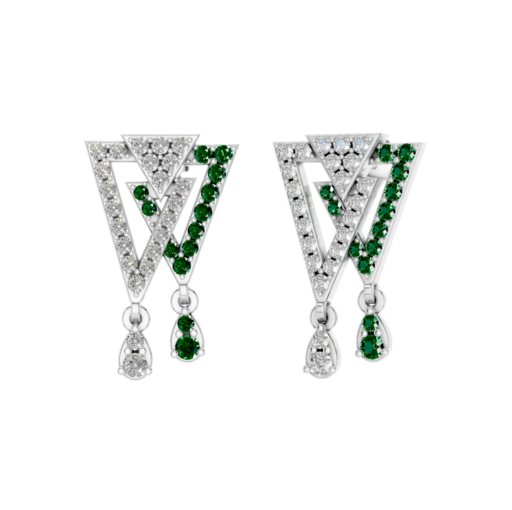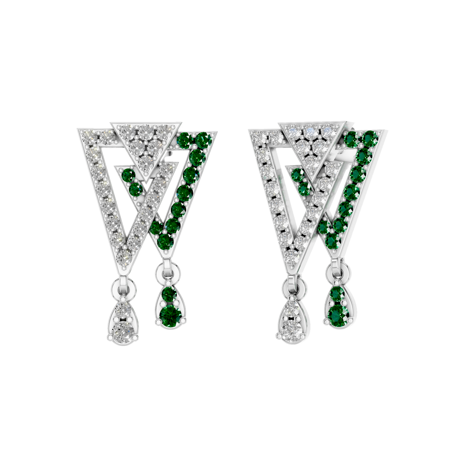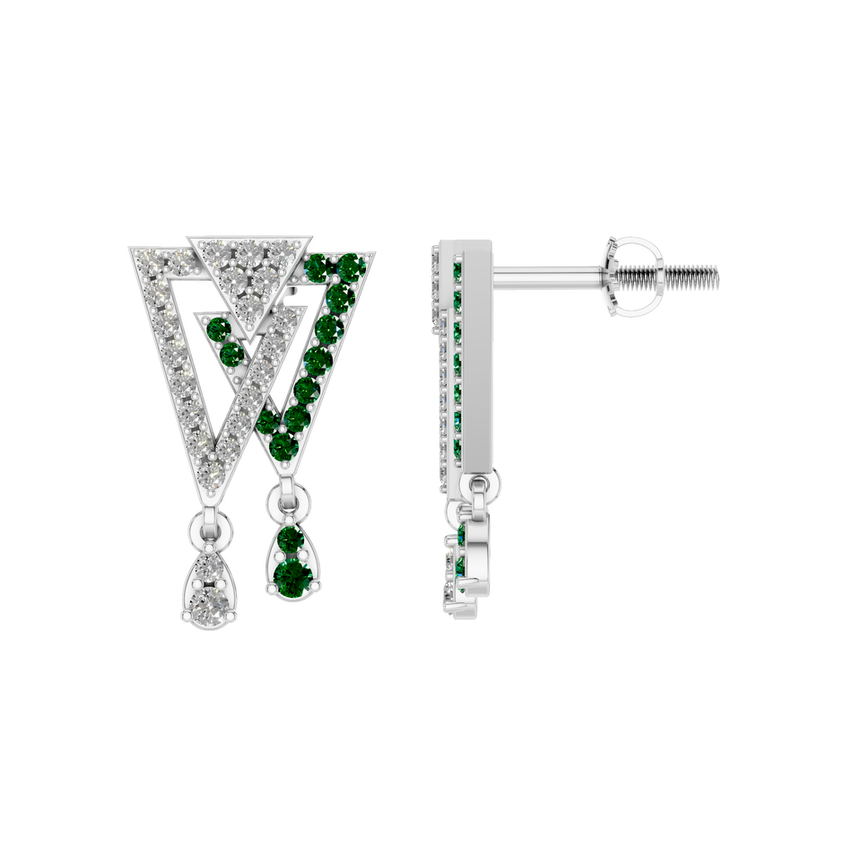 Round Cut Emerald Drop Earrings with Natural Diamonds