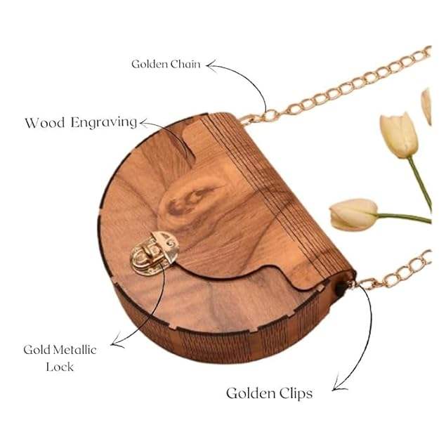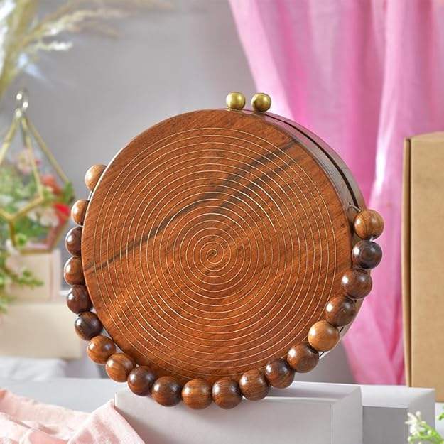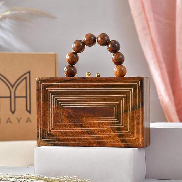 Trendy Wooden Handbag for Women Natural Simple and Long-Lasting Wooden Box Clutch Ideal for Special Occasions At Best Cost