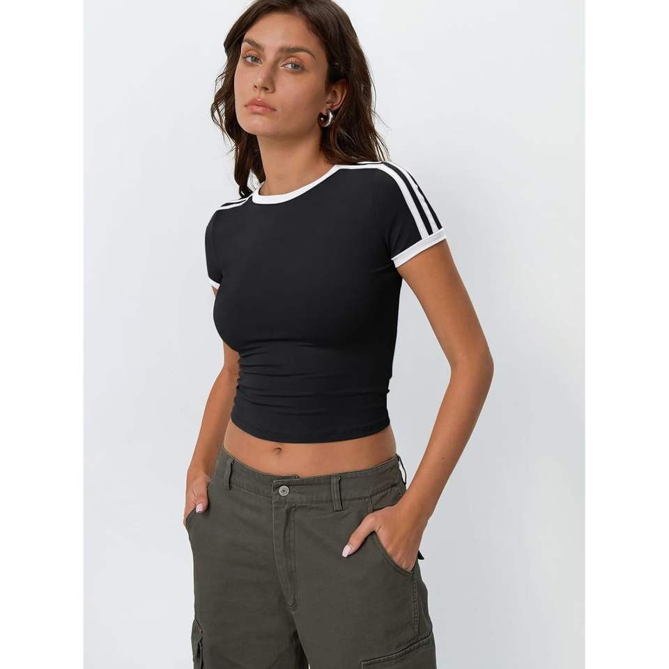 Trendy Y2K Fashion Crop Tops for Women Queen's Summer Basics Tees with Cute Short Sleeves for Going Out or Yoga
