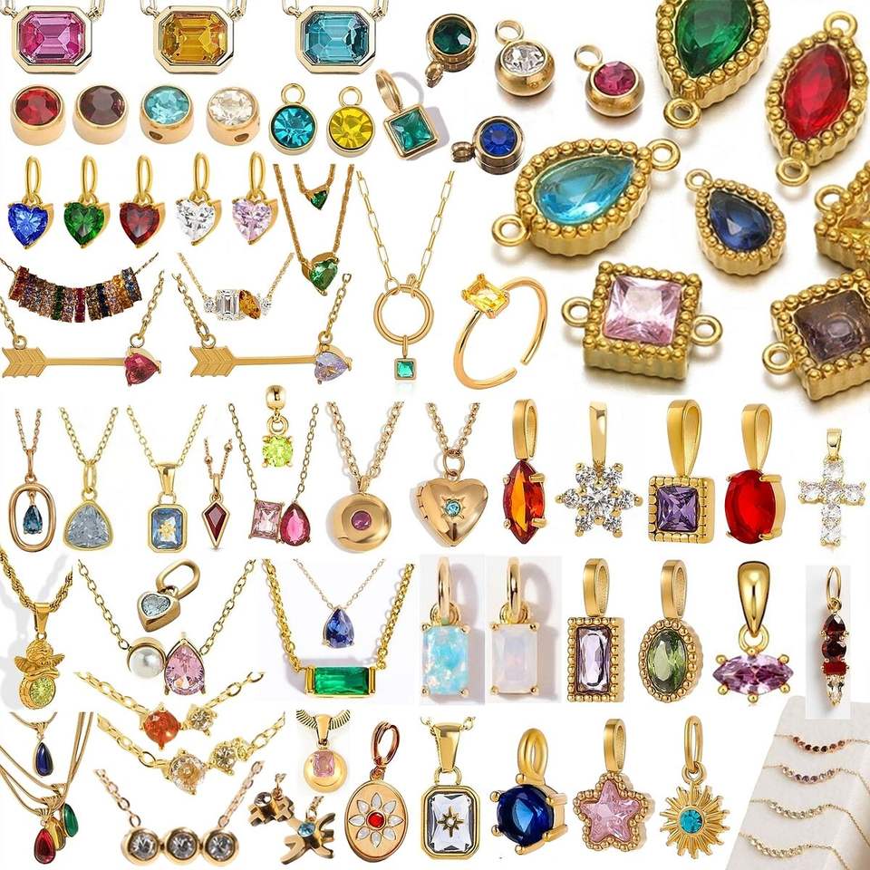 Trendy Zodiac Birthstone Stainless Steel Pendant 12 Months Colorful Zircon Gold Charms Necklace Bracelet Jewelry Making Claw