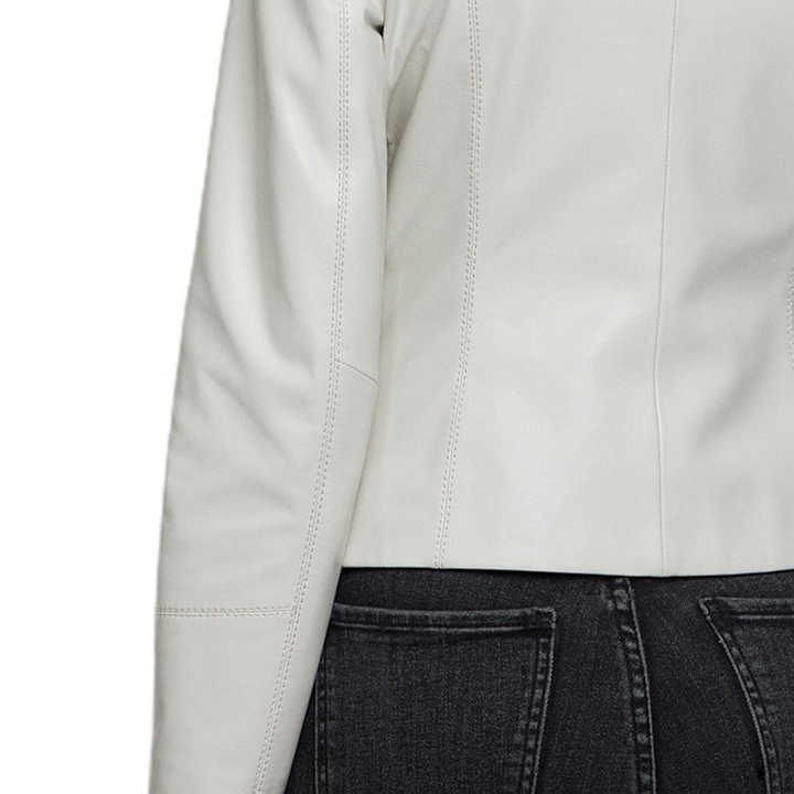 Trendy and versatile womens leather jacket that blends classic design with modern edge offering a flattering fit that works