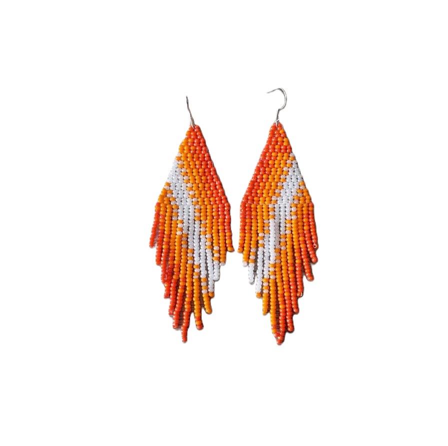 Trendy handmade seed bead hoop earrings beaded embroidery lightweight purple/yellow/ green beaded feather festival earring
