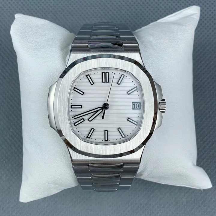 Trendy hot sell PP5711 elegant steel strip white striped dial calendar display Luminous men's business sports mechanical watch