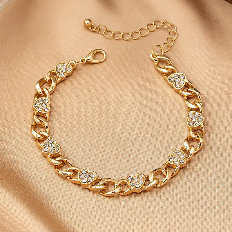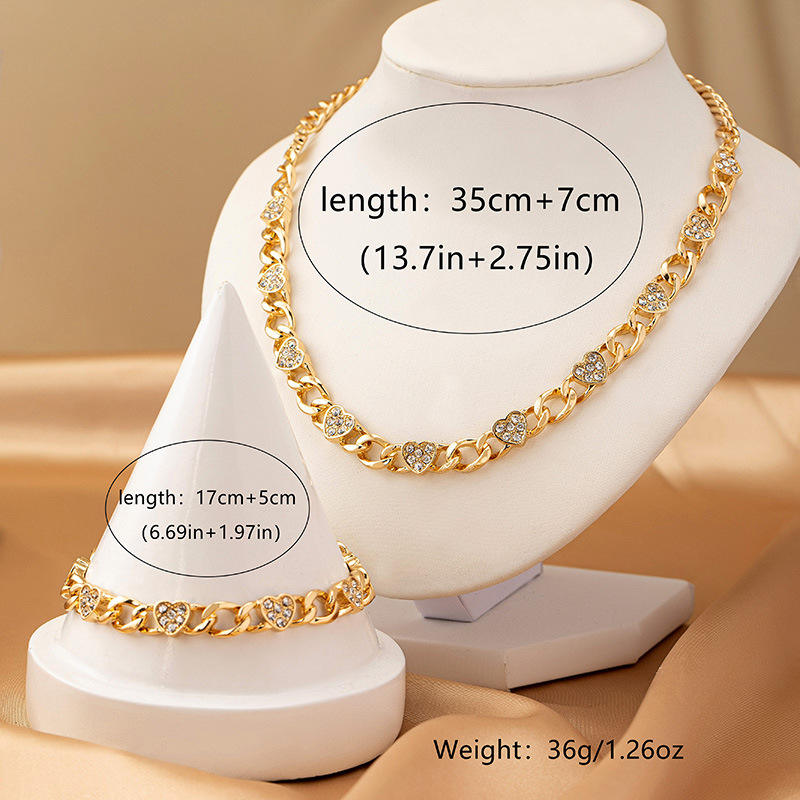 Trendy new diamond heart chain necklace bracelet set retro hip-hop style jewelry set