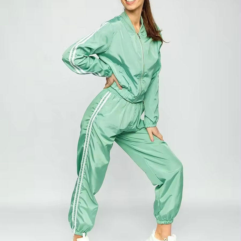 Trendy nylon cropped tracksuit lightweight & breathable fabric two-piece jogging set women running wear tracksuits