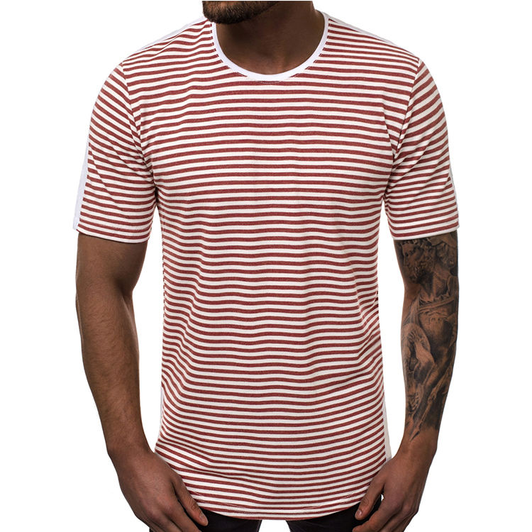 High Quality Men's Striped Round Neck T-Shirt Soft Cotton Slim Fit Casual Streetwear Tee Custom Logo Bulk Wholesale Orders