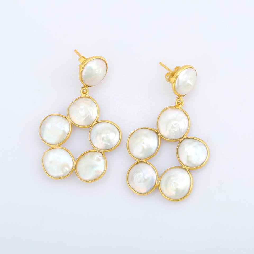 Trendy Vintage Women Jewelry 925 Freshwater Pearl Studs Long Earrings Gold Plated for Women and Girl