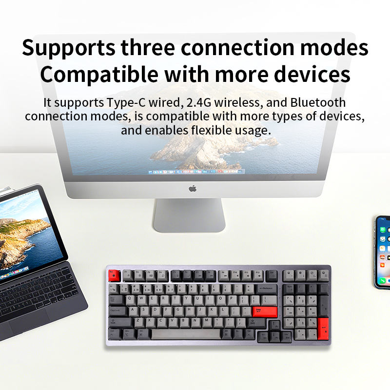 Tri-mode USB WIred Full Size Keyboard USB Type-C Interface Factory OEM Stock 96 Key Mechanical Gaming Keyboard