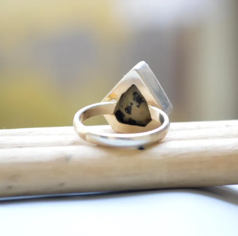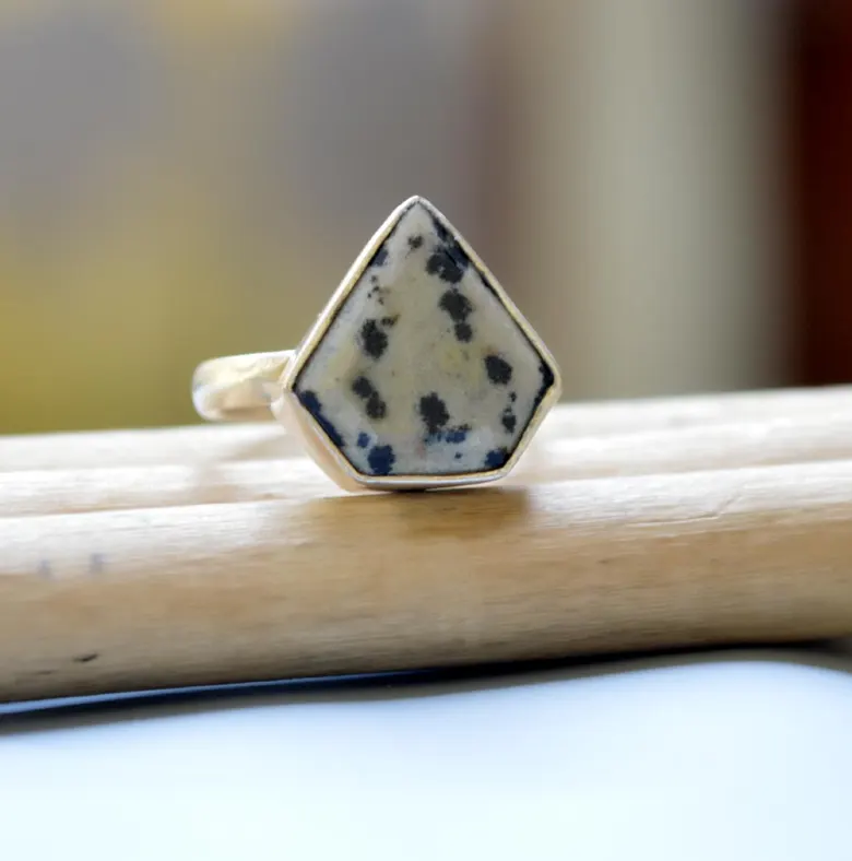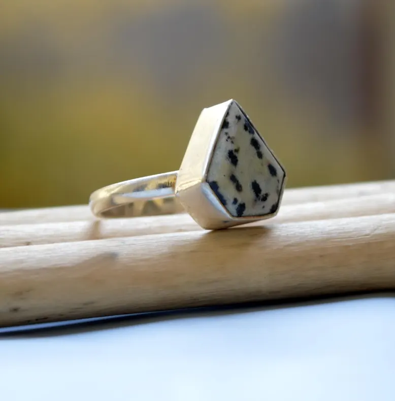 Triangle Dalmatian Jasper 925 Sterling Silver Bezel Set Boho Wedding Gift Statement Ring Unique Natural Gemstone Jewelry