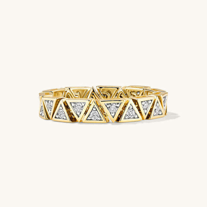 Triangle Pattern Full Eternity Wedding Band Round Brilliant Cut CZ Diamond Unique Pyramid Setting Tennis Ring Party Wear Gift