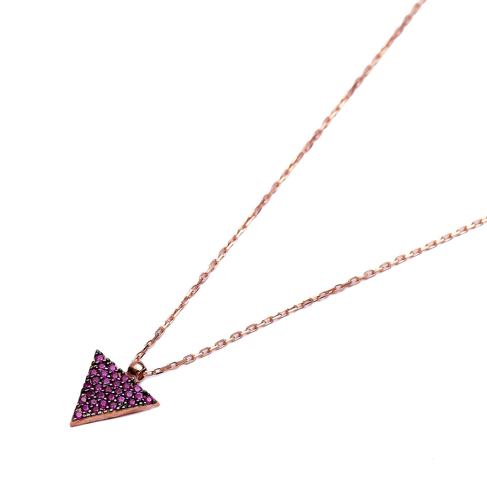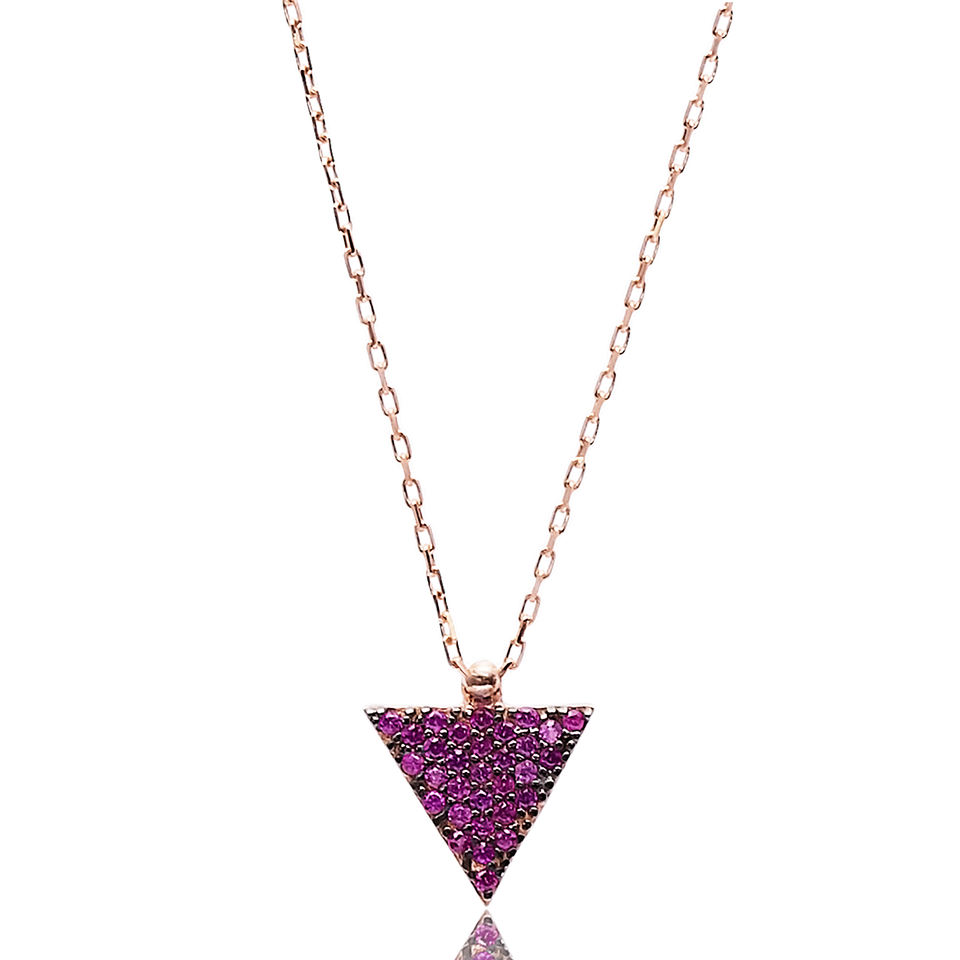 Triangle Shape Pendant Ruby Stone Geometric Design Pendant Turkish Wholesale Handcrafted 925 Sterling Silver Jewelry