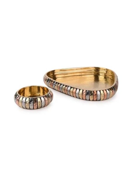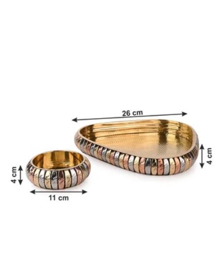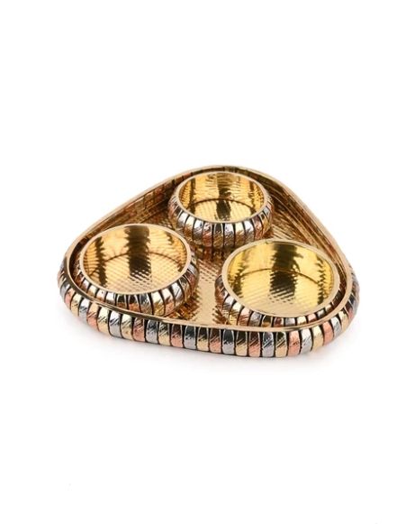 Triangle Tray with 3 round bowls for serving dry fruits Copper and Brass crafted Plated Round Shaped Bowl home table top decor