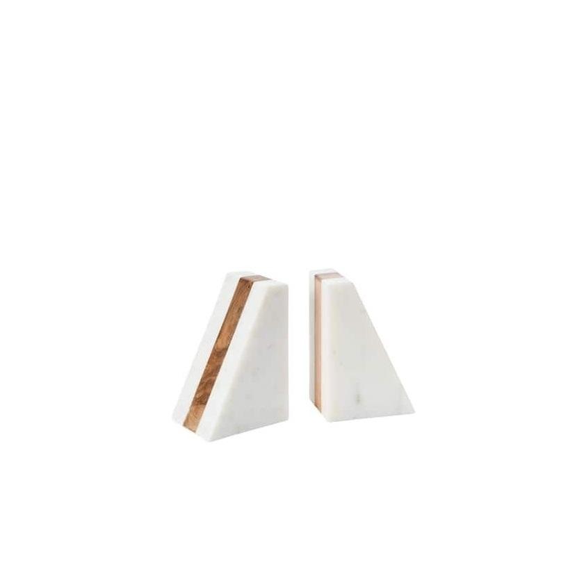 Triangle shaped white marble & wood bookend heavy weight stylish modern design durable bookshelf support decorative accent piece